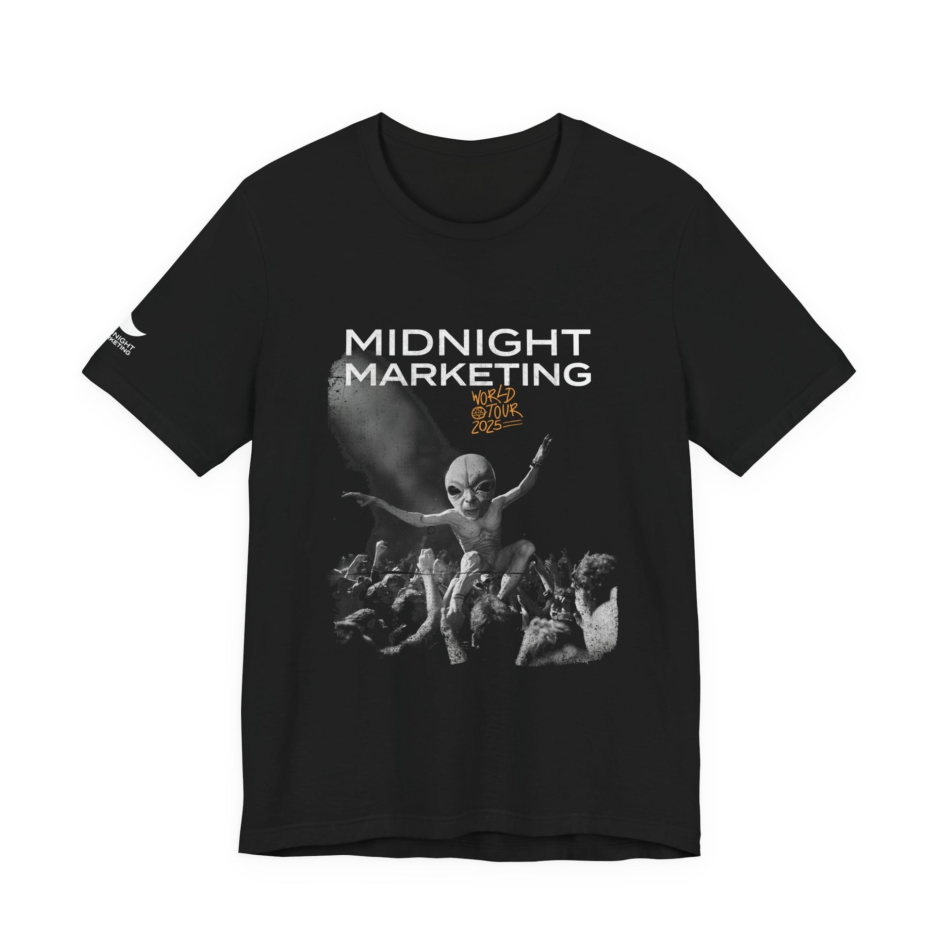 Schmeez is going full rockstar, and you get the front row. Our favorite alien is immortalized crowd-surfing on tour, turning office legend into all-out tour poster glory.